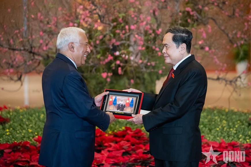 | Chủ tịch Quốc hội Trần Thanh Mẫn trao ảnh lưu niệm tặng Chủ tịch Hội đồng châu Âu Antonio Costa. |