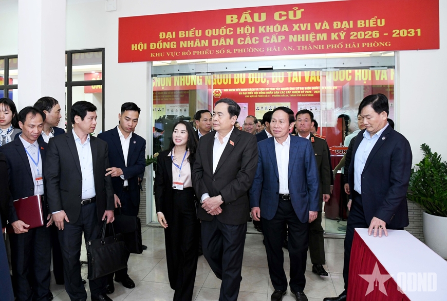 Trước đó, Chủ tịch Quốc hội Trần Thanh Mẫn và đoàn giám sát đã tới kiểm tra Khu vực bỏ phiếu số 8, phường Hải An, TP Hải Phòng.