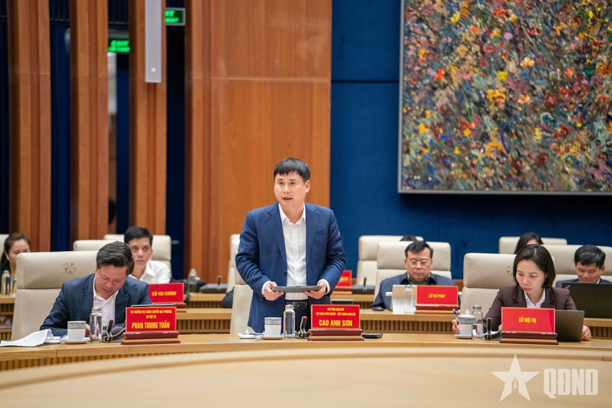 | Đại tá Cao Anh Sơn, Phó tổng giám đốc Tập đoàn Công nghiệp - Viễn thông Quân đội (Viettel) phát biểu tại cuộc làm việc. Ảnh: TIẾN CƯỜNG |