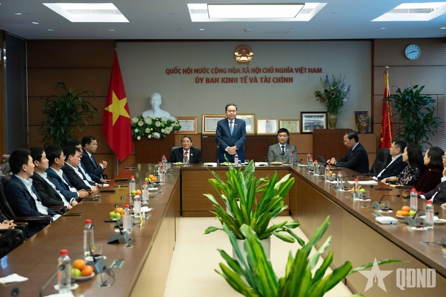 | Chủ tịch Quốc hội Trần Thanh Mẫn thăm, làm việc với Ủy ban Kinh tế và Tài chính của Quốc hội. Ảnh: LÂM HIỂN |