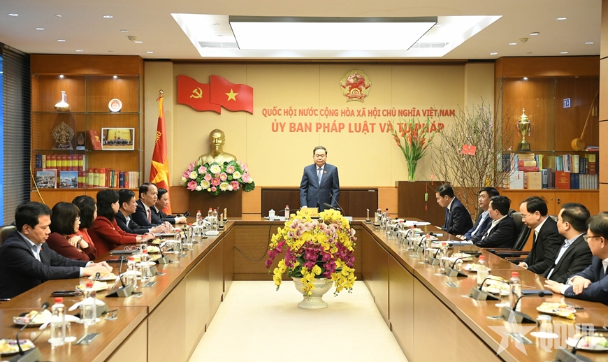 Phát biểu tại cuộc làm việc với Ủy ban Pháp luật và Tư pháp của Quốc hội, Chủ tịch Quốc hội cho biết, năm qua, Quốc hội đã hoàn thành khối lượng lập pháp lớn nhất của nhiệm kỳ, đặc biệt là việc sửa đổi, bổ sung một số điều Hiến pháp năm 2013 và nhiều luật, nhằm phục vụ chủ trương sắp xếp, tinh gọn tổ chức bộ máy, sáp nhập các đơn vị hành chính cấp tỉnh, cấp xã và cơ cấu lại các cơ quan trong hệ thống chính trị.