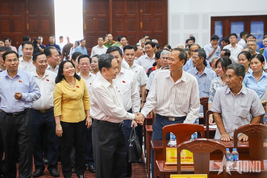 Chủ tịch Quốc hội Trần Thanh Mẫn cùng Đoàn đại biểu Quốc hội TP Cần Thơ tiếp xúc cử tri tại phường Vị Thanh, TP Cần Thơ.