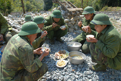 | Chuẩn bị thực phẩm, đảm bảo bữa ăn cho bộ đội |