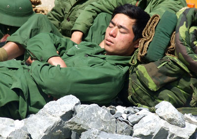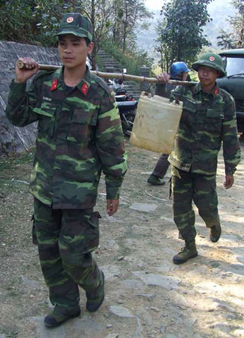 | Để có nước dùng, các chiến sĩ phải đi rất xa |