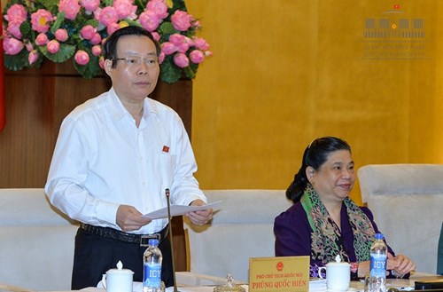 Phó chủ tịch Quốc hội Phùng Quốc Hiển điều hành nội dung buổi giám sát của UBTVQH. Ảnh: VPQH.