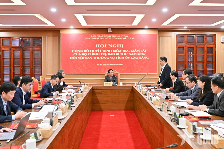 Theo đó, đoàn kiểm tra thực hiện giám sát việc lãnh đạo, chỉ đạo, tổ chức nghiên cứu, học tập, quán triệt, tuyên truyền và triển khai thực hiện Nghị quyết Đại hội XIV của Đảng; việc lãnh đạo, chỉ đạo, tổ chức thực hiện Chỉ thị số 01, ngày 23-1-2026 của Bộ Chính trị về nghiên cứu, học tập, quán triệt, tuyên truyền và triển khai thực hiện Nghị quyết Đại hội đại biểu toàn quốc lần thứ XIV của Đảng; Chỉ thị số 46, ngày 16-5-2025 của Bộ Chính trị về lãnh đạo cuộc bầu cử đại biểu Quốc hội khóa XVI và bầu cử đại biểu Hội đồng nhân dân các cấp nhiệm kỳ 2026-2031. Kiểm tra việc tổ chức và hoạt động của các cơ quan, đơn vị ở địa phương sau vận hành chính quyền địa phương 2 cấp; các nhiệm vụ, giải pháp nhằm bảo đảm thực hiện mục tiêu tăng trưởng tổng sản phẩm trong nước GDP bình quân trong giai đoạn 2026 - 2030 từ 10% trở lên theo Nghị quyết Đại hội XIV của Đảng...