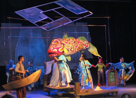 | Cảnh trong vở kịch thiếu nhi “Ông lão đánh cá và con cá vàng" |