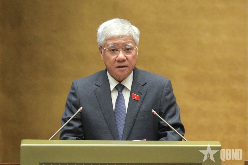 Chủ tịch Ủy ban Trung ương Mặt trận Tổ quốc Việt Nam Đỗ Văn Chiến báo cáo tại Quốc hội. |