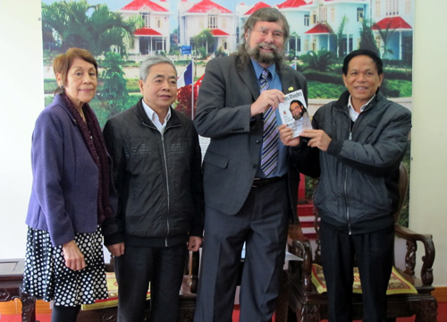 | Ông James Rhodes trao tặng cuốn sách cho đại diện Làng Hữu nghị Việt Nam. |