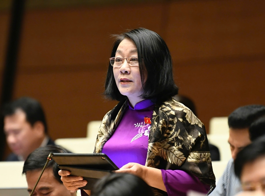 Đại biểu Nguyễn Thị Tuyết Nga (đoàn Quảng Trị) phát biểu. Ảnh: TRỌNG HẢI