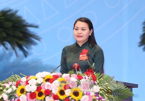 Đồng chí Nguyễn Thị Thu Hà, Ủy viên Trung ương Đảng, Chủ tịch Trung ương Hội Liên hiệp Phụ nữ Việt Nam khóa XII, nhiệm kỳ 2017 – 2022 phát biểu. Ảnh: TTXVN