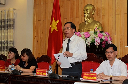 | Đồng chí Trần Quốc Hùng, Trưởng ban Tuyên giáo Tỉnh ủy báo cáo về công tác chuẩn bị Đai hội Đảng bộ tỉnh lần thứ XIX. |