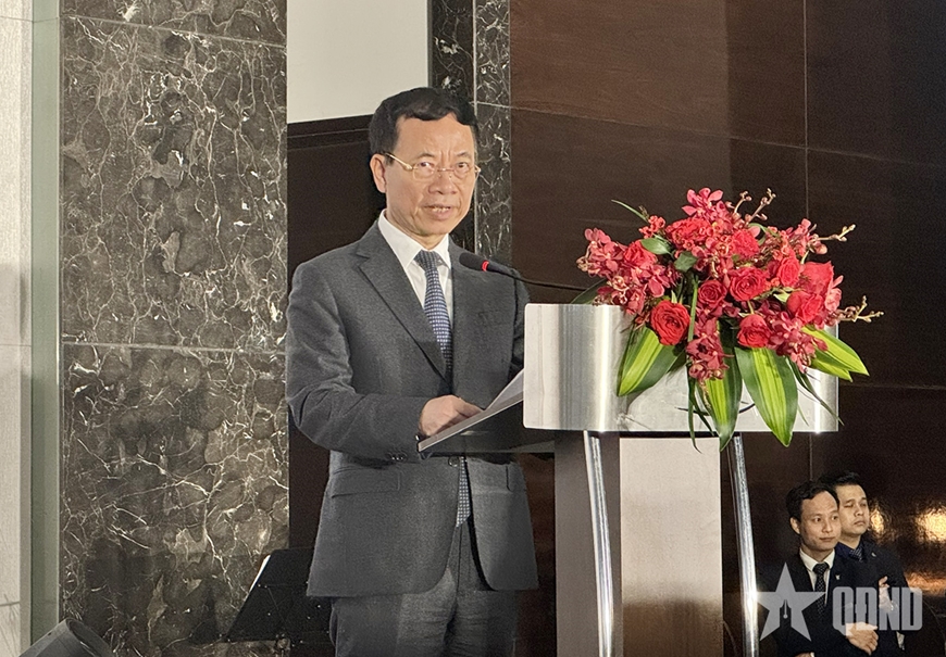 Phát biểu tại buổi lễ, Bộ trưởng Nguyễn Mạnh Hùng gửi tới Đại sứ cùng phu nhân, và qua Đại sứ, gửi tới Nhà vua, Hoàng hậu, Hoàng gia, Chính phủ và nhân dân Nhật Bản lời chúc mừng nồng nhiệt.