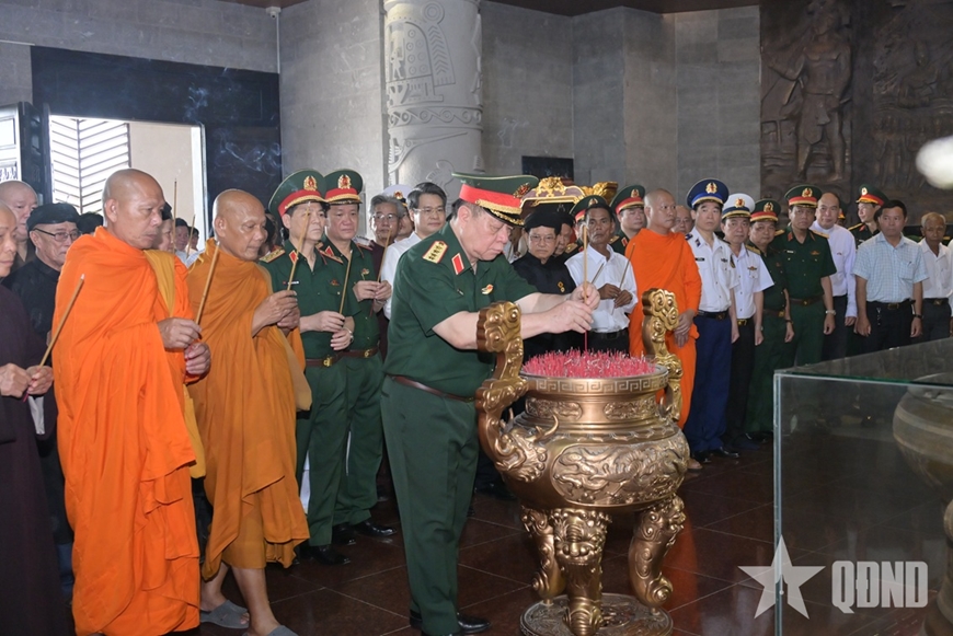 | Đại tướng Nguyễn Trọng Nghĩa và các đại biểu dâng hương, dâng hoa tại Đền Thờ Vua Hùng, TP Cần Thơ. |
