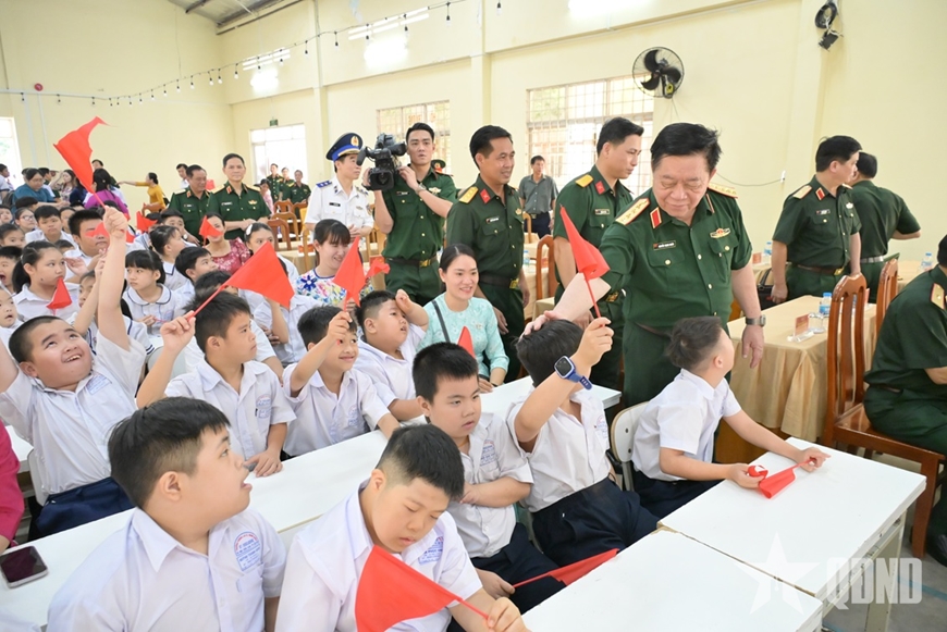 | Đại tướng Nguyễn Trọng Nghĩa thăm, tặng quà Trường Giáo dục Chuyên biệt TP Cần Thơ. |
