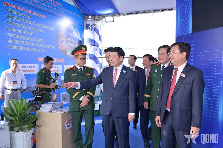 Đại tướng Phan Văn Giang, Ủy viên Bộ Chính trị, Phó bí thư Quân ủy Trung ương, Bộ trưởng Bộ Quốc phòng tham quan triển lãm tại Đại hội đại biểu Đảng bộ tỉnh An Giang lần thứ I, nhiệm kỳ 2025-2030. |