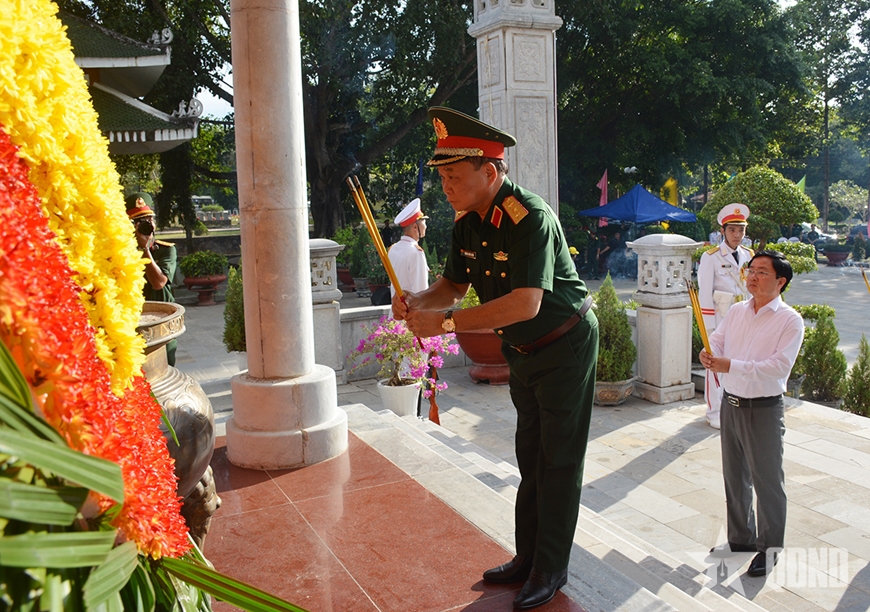 | Thượng tướng Nguyễn Trường Thắng dâng hương tưởng niệm các Anh hùng liệt sĩ. |