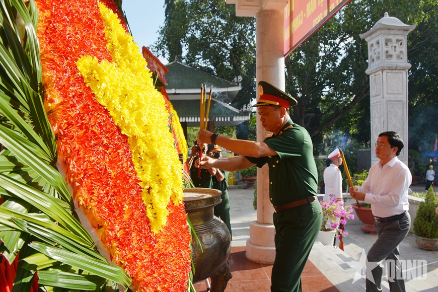 | Thượng tướng Hoàng Xuân Chiến dâng hương tưởng niệm các Anh hùng liệt sĩ. |