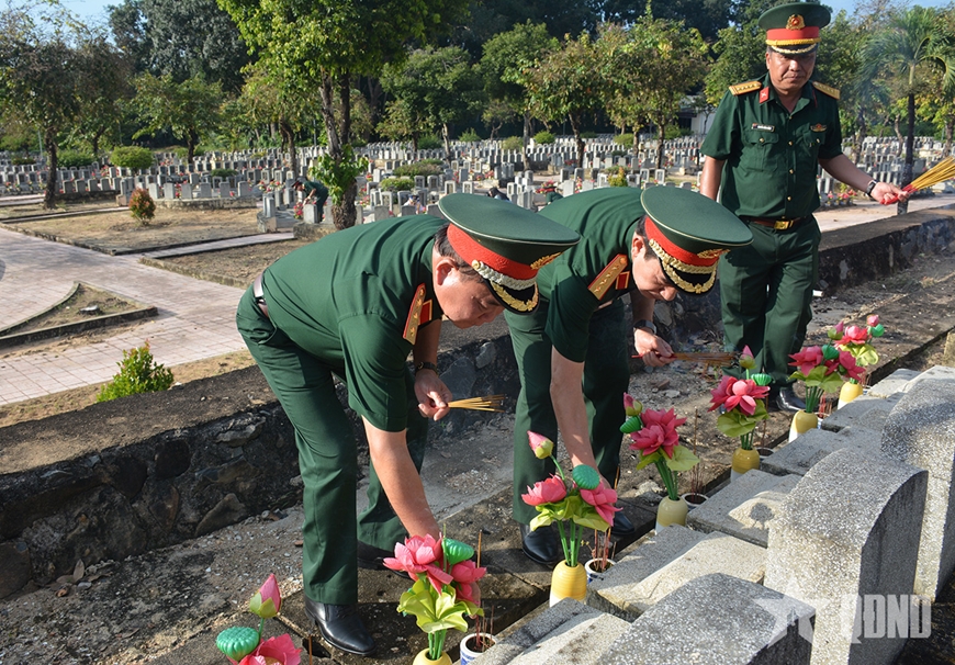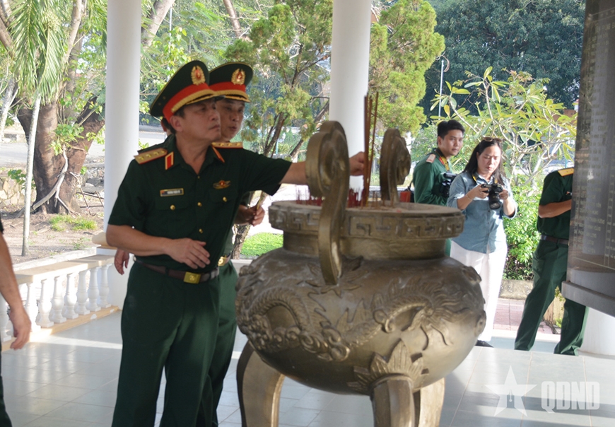 Trong không khí trang nghiêm, đoàn công tác và các đại biểu thành kính dâng hoa, dâng hương tưởng nhớ, tri ân công lao các Anh hùng liệt sĩ đã hy sinh vì độc lập, tự do của Tổ quốc.
