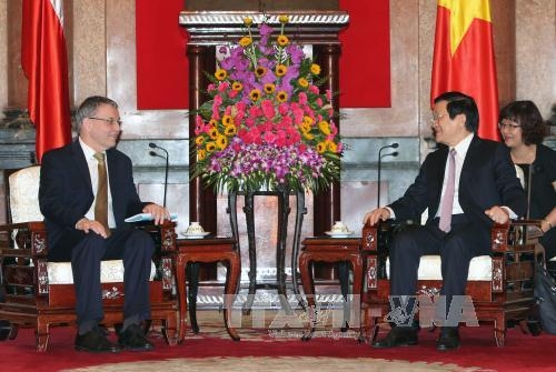 QĐND - Ngày 23-10, tại Phủ Chủ tịch, Chủ tịch nước Trương Tấn Sang đã tiếp Bộ trưởng Ngoại giao Cộng hòa Séc Lu-bô-mi-rơ Gia-ô-ra-lếch (Lubomir Zaoralek) đang thăm chính thức Việt Nam.