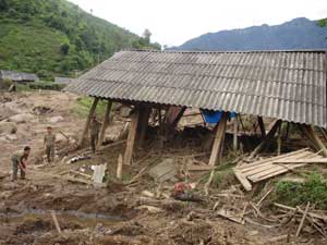 | Biến đổi khí hậu gây ra lũ quét, ảnh hưởng đến cuộc sống nhiều gia đình miền núi. (Ảnh chụp tại Bát Xát (Lào Cai), tháng 8-2008) |
