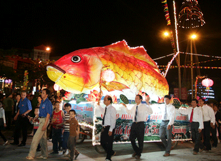 | Hình ảnh cá chép vượt vũ môn được tái hiện trong đêm hội |