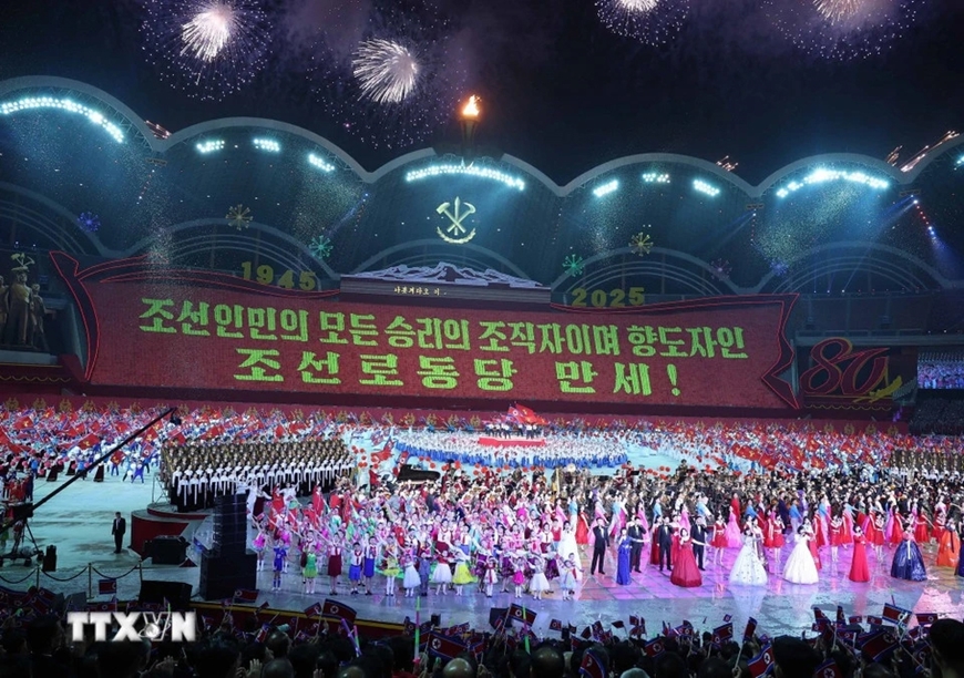 Chương trình biểu diễn nghệ thuật Kỷ niệm 80 năm thành lập Đảng Lao động Triều Tiên. Ảnh: TTXVN |