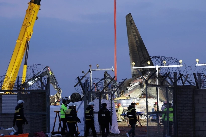 | Hiện trường vụ tai nạn máy bay tại Muan, tỉnh Nam Jeolla (Hàn Quốc), ngày 29-12-2024. Ảnh: TTXVN |