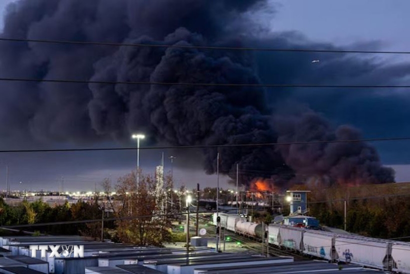 | Khói bốc lên tại hiện trường vụ rơi máy bay chở hàng ở sân bay quốc tế Louisville Muhammad Ali, bang Kentucky (Mỹ). |