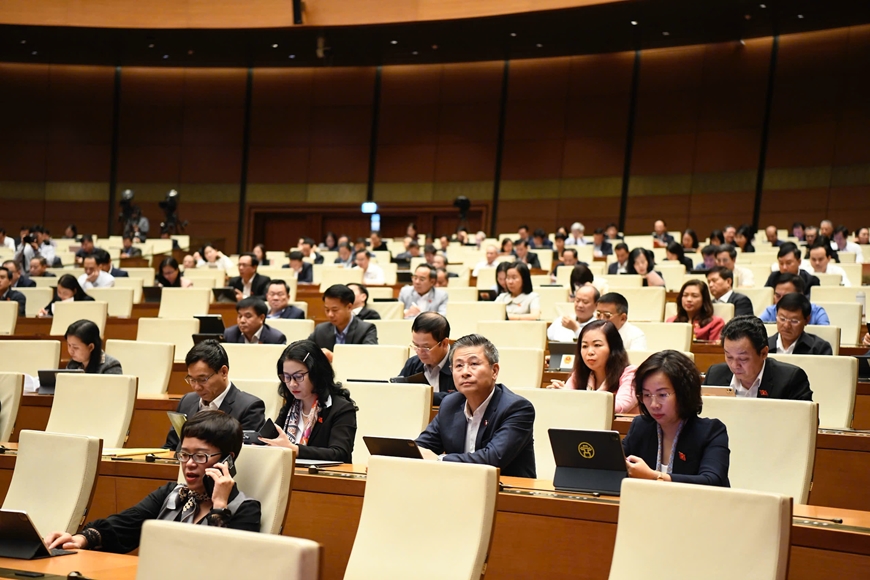 | Quang cảnh phiên họp ngày 7-11 tại Kỳ họp thứ mười, Quốc hội khóa XV. Ảnh: TRỌNG HẢI |