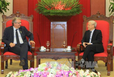 Trong tình hình thế giới đầy biến động đang đặt ra nhiều vấn đề lớn tại châu Âu cũng như tại châu Á-Thái Bình Dương và Đông Nam Á hiện nay, Tổng Bí thư đề nghị hai bên tăng cường hợp tác dưới các hình thức phù hợp, chia sẻ thông tin, nghiên cứu, kinh nghiệm thực tiễn để giúp đỡ lẫn nhau nâng cao năng lực của mỗi đảng. Tổng Bí thư cũng đề nghị đồng chí Bí thư toàn quốc PCF trên cương vị Chủ tịch Đảng Cánh tả châu Âu cùng với PCF quan tâm hỗ trợ, thúc đẩy quan hệ của Đảng Cộng sản Việt Nam với các đảng cánh tả có vai trò tại châu Âu cũng như hỗ trợ phát triển quan hệ Việt Nam - Pháp, Việt Nam - EU.
