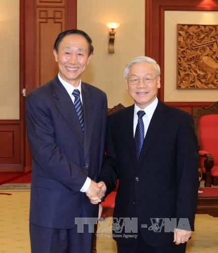 Tổng Bí thư chúc mừng những thành tựu mà nhân dân Trung Quốc đã đạt được trong sự nghiệp phát triển đất nước, khẳng định, Đảng, Nhà nước và nhân dân Việt Nam luôn coi trọng và sẵn sàng cùng với Đảng, Nhà nước và nhân dân Trung Quốc phát triển mối quan hệ Đối tác hợp tác chiến lược toàn diện. Tổng Bí thư đề nghị hai bên tích cực thực hiện nhận thức chung của lãnh đạo cấp cao hai Đảng, hai nước, tăng cường giao lưu cấp cao, tăng cường tin cậy chính trị, thúc đẩy hợp tác thực chất, hiệu quả trên các lĩnh vực, cụ thể hóa các dự án hợp tác kinh tế, đầu tư, từng bước giải quyết các vấn đề còn tồn tại, vì lợi ích của nhân dân hai nước, vì hòa bình, ổn định trong khu vực.