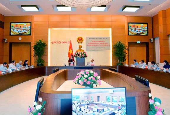 Tham dự buổi làm việc có đồng chí Nguyễn Thị Kim Ngân, Ủy viên Bộ Chính trị, Bí thư Đảng đoàn Quốc hội, Chủ tịch Quốc hội; đồng chí Tòng Thị Phóng, Ủy viên Bộ Chính trị, Phó bí thư Đảng đoàn Quốc hội, Phó chủ tịch Thường trực Quốc hội; các đồng chí Phó chủ tịch Quốc hội, Ủy viên Đảng đoàn Quốc hội.