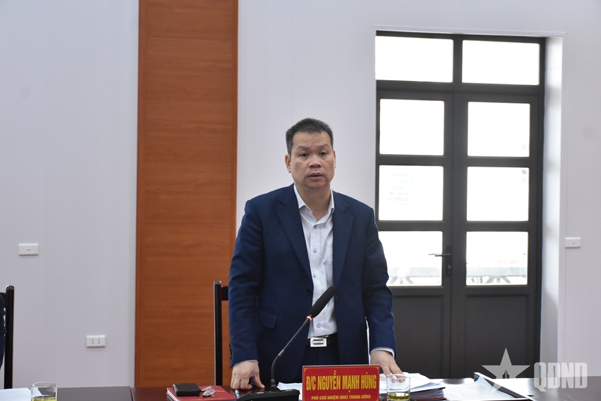 Thượng tướng Trương Thiên Tô, Ủy viên Trung ương Đảng, Phó chủ nhiệm Tổng cục Chính trị, Phó trưởng đoàn kiểm tra, giám sát số 16 chủ trì buổi làm việc.