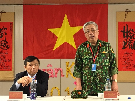 Gặp mặt đông đủ cán bộ, nhân viên BVDC 2.1, Đoàn Tổ công tác liên ngành đã lắng nghe nhiều ý kiến bày tỏ tâm tư, nguyện vọng và một số vướng mắc khi thực hiện nhiệm vụ tại Phái bộ. Các ý kiến đều bày tỏ niềm tự hào khi được lựa chọn tham gia hoạt động GGHB LHQ, mặc dù lần đầu triển khai còn nhiều khó khăn, thiếu thốn, tuy nhiên cán bộ, nhân viên đều quyết tâm hoàn thành tốt nhiệm vụ, đoàn kết xây dựng đơn vị. Đến nay, đã có 10 đồng chí có nguyện vọng được tiếp tục tham gia vào đội hình BVDC cấp 2 trong những đợt triển khai sau này. Thượng tướng Nguyễn Chí Vịnh biểu dương tinh thần cố gắng, không ngại khó khăn, gian khổ của cán bộ, nhân viên BVDC 2.1, đồng thời yêu cầu các cơ quan liên quan nhanh chóng xem xét, sửa đổi những chính sách chưa phù hợp đối với quân nhân tham gia hoạt động GGHB LHQ, tạo điều kiện tốt để khuyến khích quân nhân nói chung và y, bác sĩ nói riêng tham gia lĩnh vực đặc thù này, nhất là quân nhân nữ…