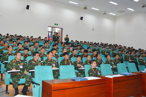 | Quang cảnh một buổi học tập trung tại hội trường của Đội Công binh Việt Nam. |