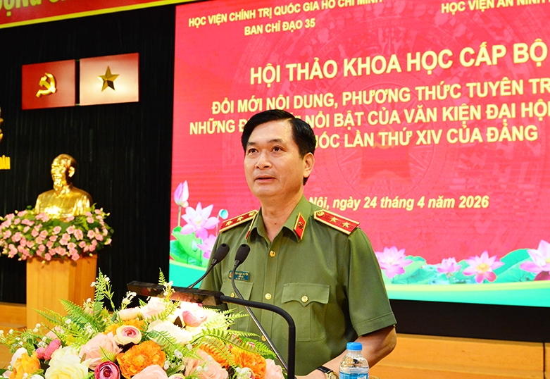 Hội thảo khẳng định: Văn kiện Đại hội XIV của Đảng là kết tinh trí tuệ, sự hội tụ giữa "ý Đảng" với "lòng dân", là "ngọn đuốc soi đường", "cẩm nang hành động", "lời cam kết" mạnh mẽ của Đảng trước nhân dân về kỷ nguyên phát triển mới của đất nước. Văn kiện thể hiện sự phát triển về tư duy lý luận - thực tiễn của Đảng trên các vấn đề cốt lõi của quá trình phát triển, nhận diện rõ những thách thức đặt ra với nhiệm vụ bảo vệ Đảng, Nhà nước và chế độ, nhận diện âm mưu, phương thức, thủ đoạn, luận điệu chống phá Văn kiện Đại hội XIV cũng như nền tảng tư tưởng của Đảng.