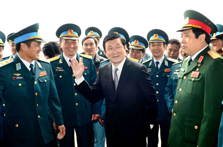 Chủ tịch nước Trương Tấn Sang trong một lần đến thăm Quân chủng Phòng không-Không quân. Ảnh: Minh Trường