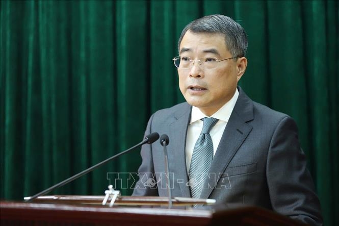 Đồng chí Lê Minh Hưng, Ủy viên Bộ Chính trị, Bí thư Trung ương Đảng, Trưởng ban Tổ chức Trung ương phát biểu giao nhiệm vụ tại Lễ công bố.