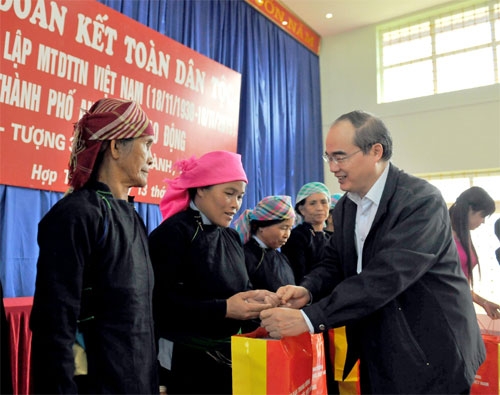 QĐND - Nhân kỷ niệm 85 năm Ngày truyền thống Mặt trận Tổ quốc (MTTQ) Việt Nam (18-11-1930/18-11-2015), sáng 13-11, đồng chí Nguyễn Thiện Nhân, Ủy viên Bộ Chính trị, Chủ tịch Ủy ban Trung ương MTTQ Việt Nam đã dự Ngày hội Đại đoàn kết toàn dân tộc tại các thôn: Tượng 1 và Tượng 3, xã Hợp Thành, thành phố Lào Cai, tỉnh Lào Cai.