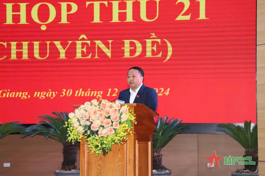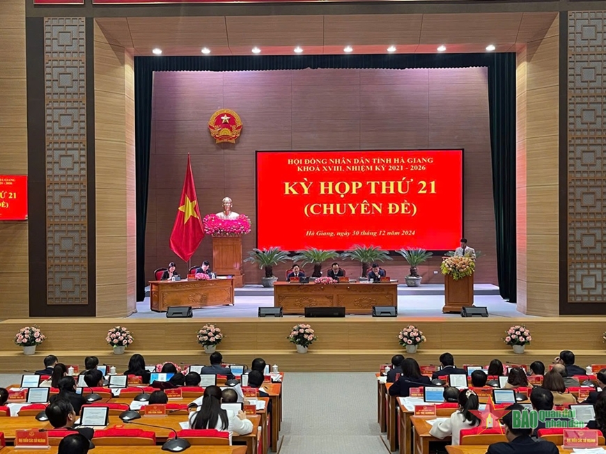 Quang cảnh Kỳ họp thứ 21 (chuyên đề) Hội đồng nhân dân tỉnh Hà Giang khóa XVIII, nhiệm kỳ 2021-2026. |
