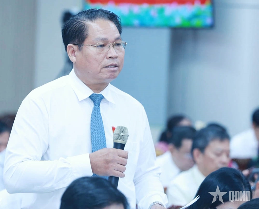 | Đồng chí Tôn Ngọc Hạnh phát biểu tại kỳ họp. |