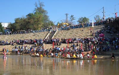 QĐND Online - Sáng 19-2 (mùng 6 Tết Canh Dần), trên sông Đăk Bla, đoạn chảy qua thành phố Kon Tum, Sở Văn Hóa, Thể thao và Du lịch (VH, TT&DL) Kon Tum đã tổ chức Giải đua thuyền độc mộc truyền thống mừng xuân Canh Dần.