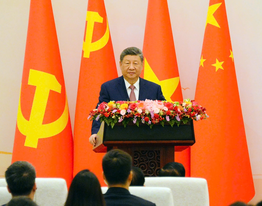 | Tổng Bí thư, Chủ tịch Trung Quốc Tập Cận Bình phát biểu tại buổi gặp gỡ thanh niên hai nước tham gia chương trình “Hành trình đỏ nghiên cứu, học tập”. |