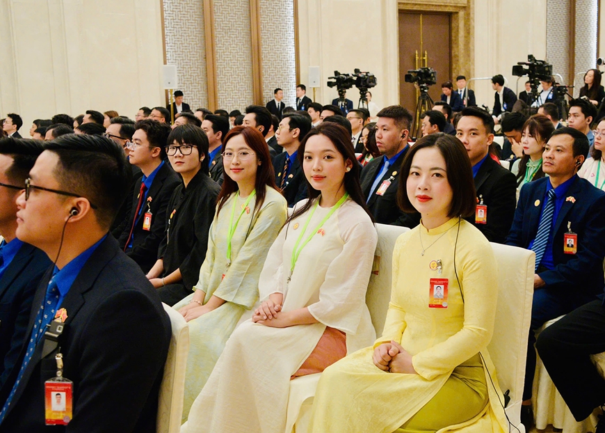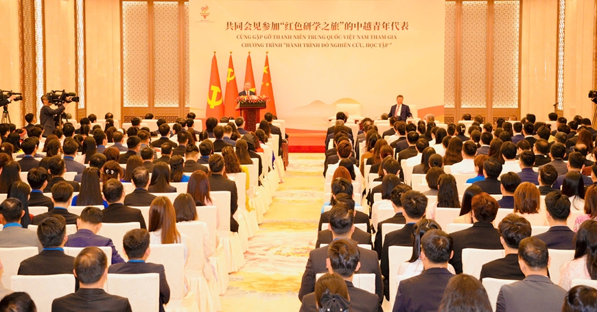 | Đại biểu thanh niên Việt Nam - Trung Quốc tham gia chương trình “Hành trình đỏ nghiên cứu, học tập” tại cuộc gặp gỡ với Tổng Bí thư, Chủ tịch nước Tô Lâm và Tổng Bí thư, Chủ tịch Trung Quốc Tập Cận Bình. |