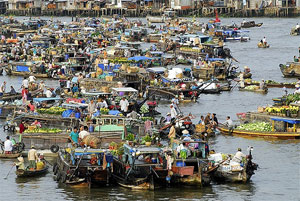 Chợ nổi trên sông Hậu luôn là nơi có nguy cơ xảy ra tai nạn đường thuỷ cao. Ảnh minh hoạ
