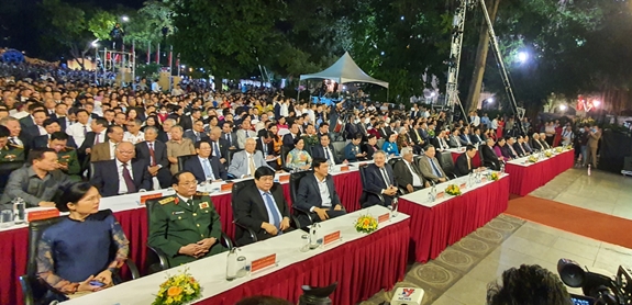 Tại buổi lễ đã diễn ra chương trình nghệ thuật với chủ đề “Tỏa sáng đất rồng thiêng”. Với thời lượng 60 phút, chương trình gồm các ca khúc là những tác phẩm ca ngợi truyền thống Thăng Long - Hà Nội hơn 1.000 năm văn hiến anh hùng hào hoa và thanh lịch; Thủ đô của lương tri và phẩm giá con người. Chương trình gồm 3 phần: Huyền thoại Thăng Long; Nơi lắng hồn núi sông; Thăng Long - Hà Nội hội tụ và phát triển, với những bài hát nổi tiếng về Hà Nội như: Truyền thuyết Hồ Gươm, Hà Nội linh thiêng hào hoa, Thăng Long - Hà Nội bay lên, Người Hà Nội, Tiến về Hà Nội… Chương trình là sự phối hợp của các màn nghệ thuật âm thanh, ánh sáng hiện đại thu hút người xem...