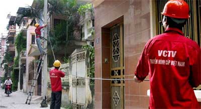 | Công nhân Trung tâm kỹ thuật Truyền hình cáp Việt Nam triển khai hạ tầng truyền dẫn đến thuê bao. Ảnh internet |