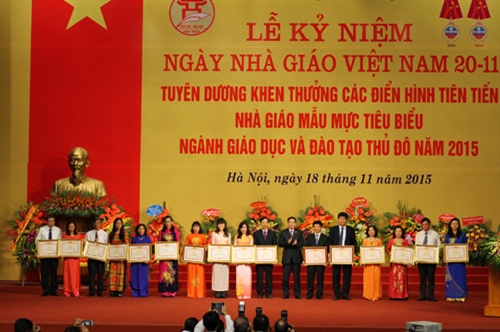 QĐND Online – Nhân kỷ niệm Ngày Nhà giáo Việt Nam (20-11), sáng 18-11, ngành Giáo dục và Đào tạo (GD-ĐT) Thủ đô đã tổ chức Lễ kỷ niệm và Tuyên dương khen thưởng các điển hình tiên tiến, nhà giáo mẫu mực tiêu biểu Thủ đô năm 2015.