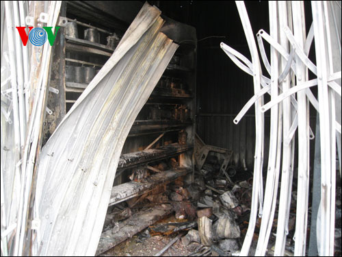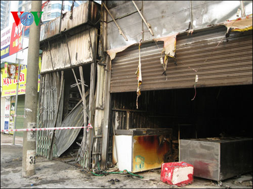 Các cửa hàng bên ngoài - đối diện trường Tiểu học Nam Trung Yên cũng bị lửa cháy lan